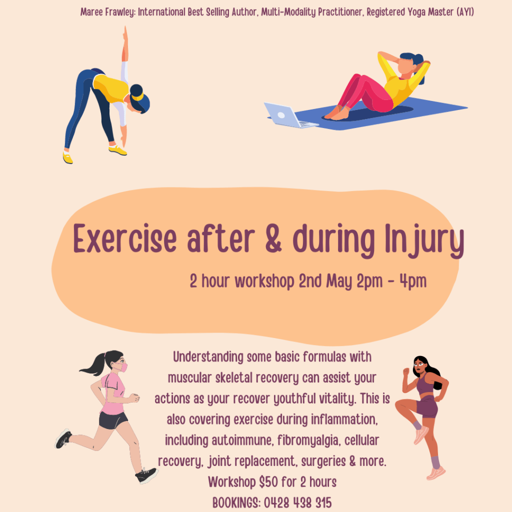 Exercise After and During Injury is a 2 hour workshop to assist your understanding of how to reduce the inflammation chemistry whilst you rehabilitate and exercise after injury. Tuesday 2nd May 2pm, 2 hour workshop $50. Click here to book online.